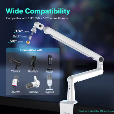 마이크스탠드암 FIFINE 로우 붐 책상 마운트 케이블 관리 조절식 AM8 K688White BM88W